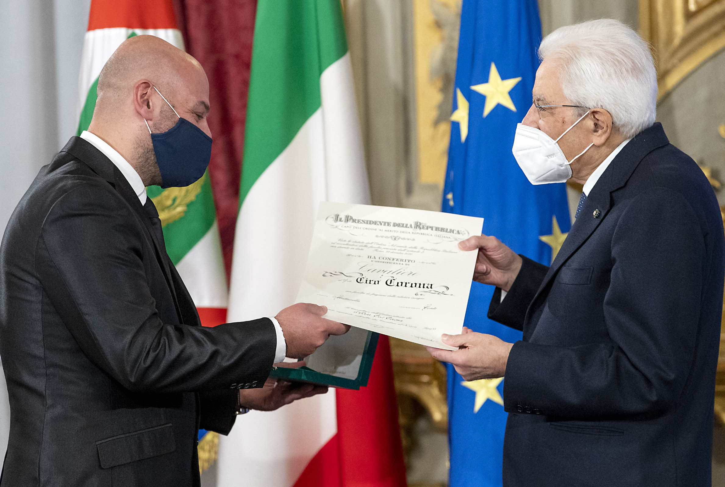 Il Presidente Sergio Mattarella consegna l'onorificenza OMRI “motu proprio” a Ciro Corona