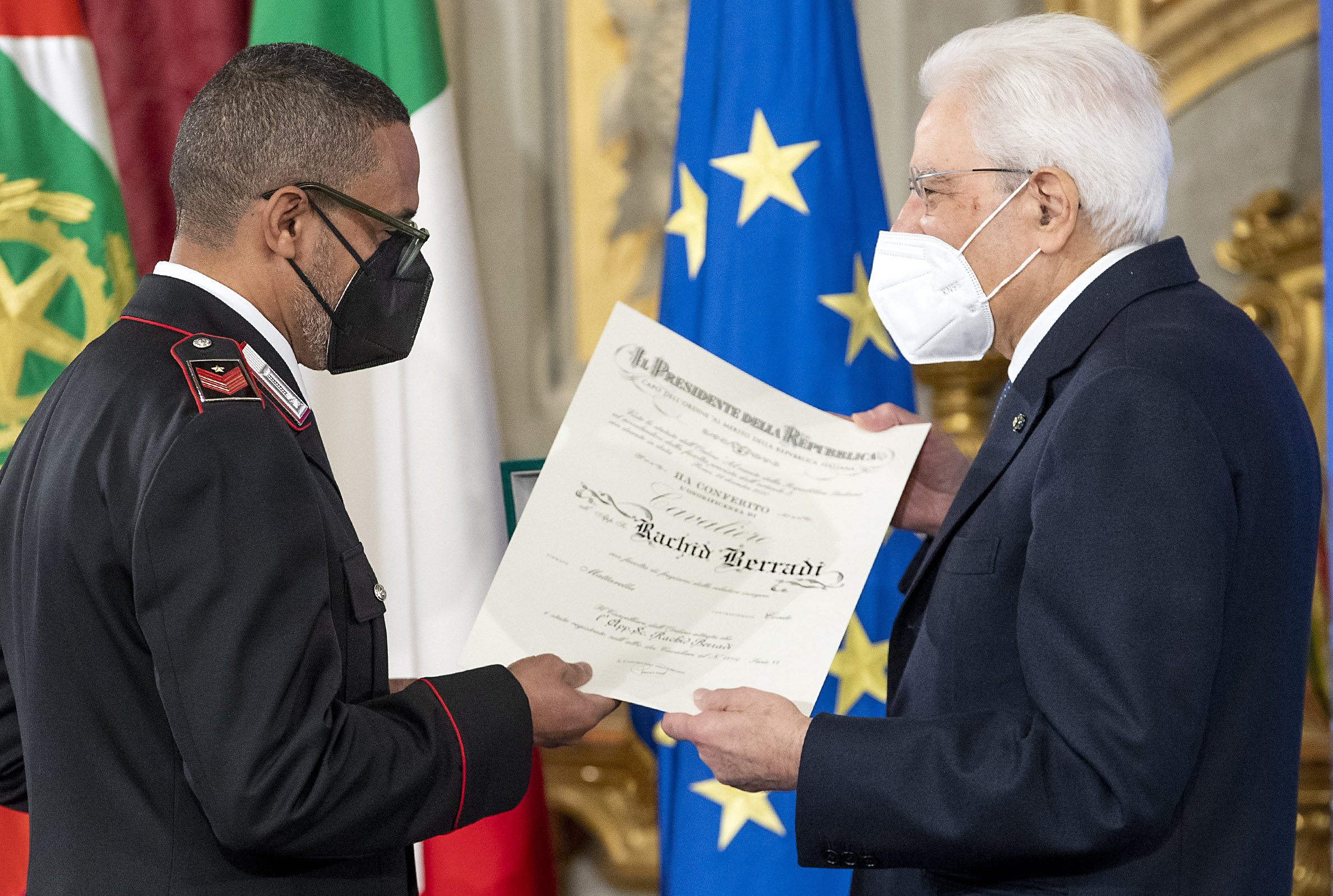 Il Presidente Sergio Mattarella consegna l'onorificenza OMRI “motu proprio” a Rachid Berrati