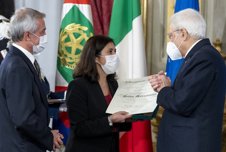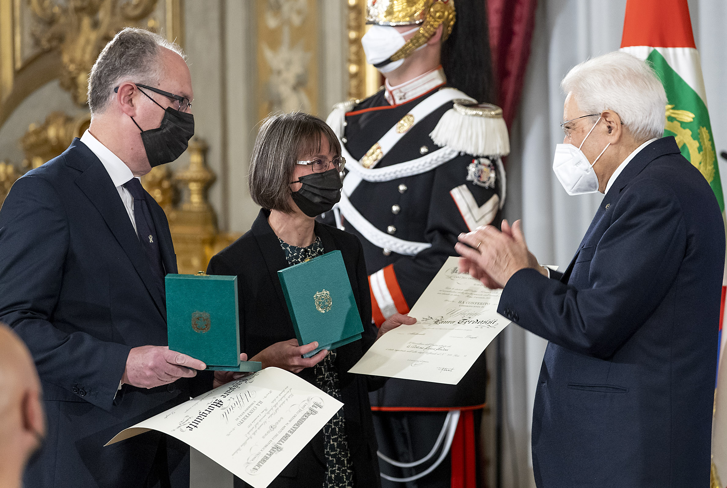 Il Presidente Sergio Mattarella consegna l'onorificenza OMRI “motu proprio” a Ivana Perri e Matteo Mazzarotto