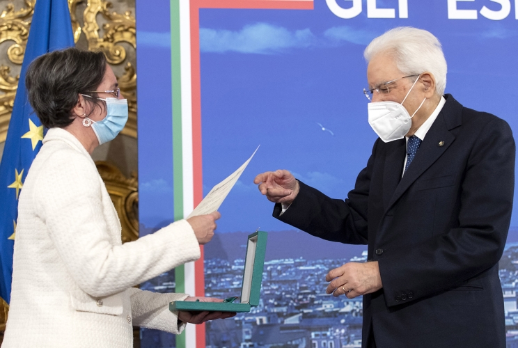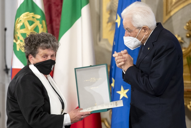 Il Presidente Sergio Mattarella consegna l'onorificenza OMRI “motu proprio” a Maria Teresa Nardello