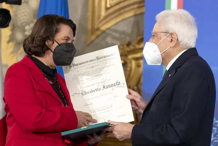 Il Presidente Sergio Mattarella consegna l'onorificenza OMRI “motu proprio” a Elisabetta Iannelli