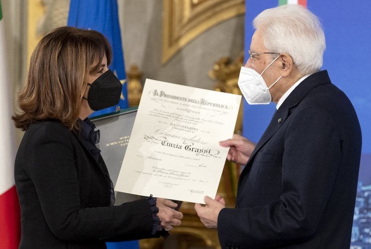 Il Presidente Sergio Mattarella consegna l'onorificenza OMRI “motu proprio” a Cinzia Grassi