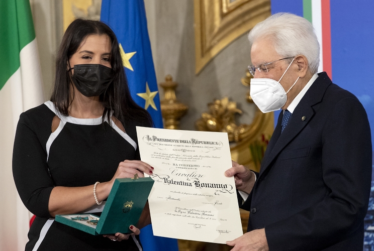 Il Presidente Sergio Mattarella consegna l'onorificenza OMRI “motu proprio” a Valentina Bonanno