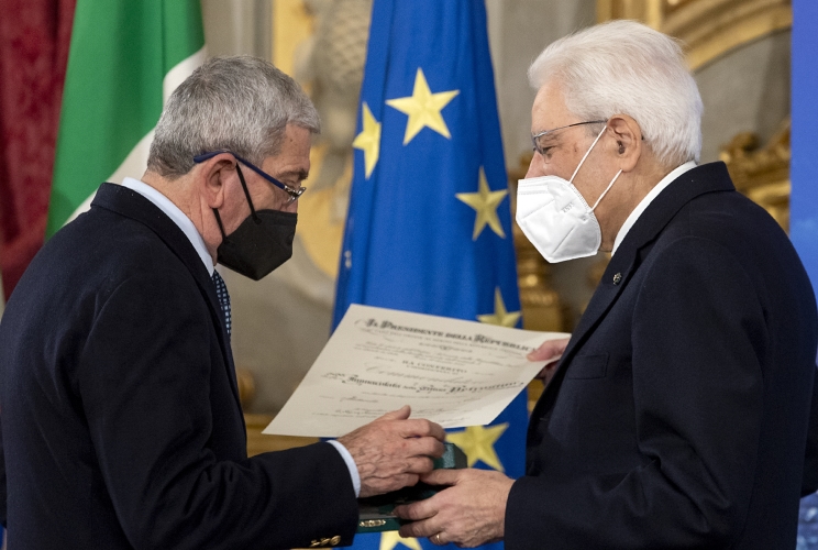 Il Presidente Sergio Mattarella consegna l'onorificenza OMRI “motu proprio” a Enrico Parisi