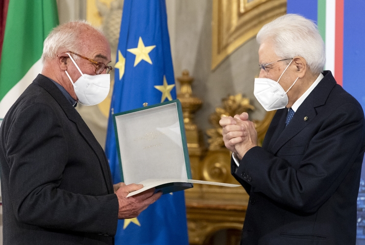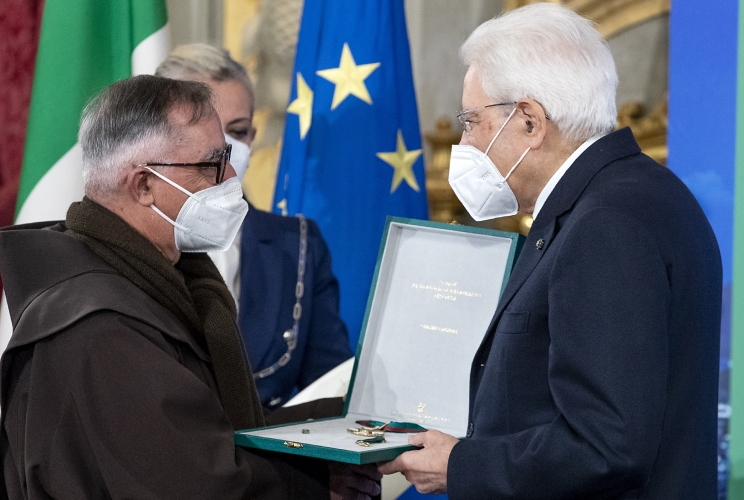Il Presidente Sergio Mattarella consegna l'onorificenza OMRI “motu proprio” a Padre Salvatore Morittu