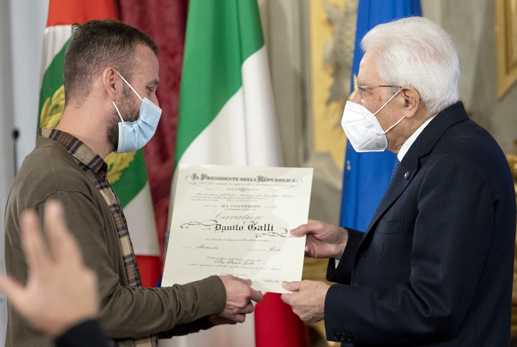 Il Presidente Sergio Mattarella consegna l'onorificenza OMRI “motu proprio” a Danilo Galli