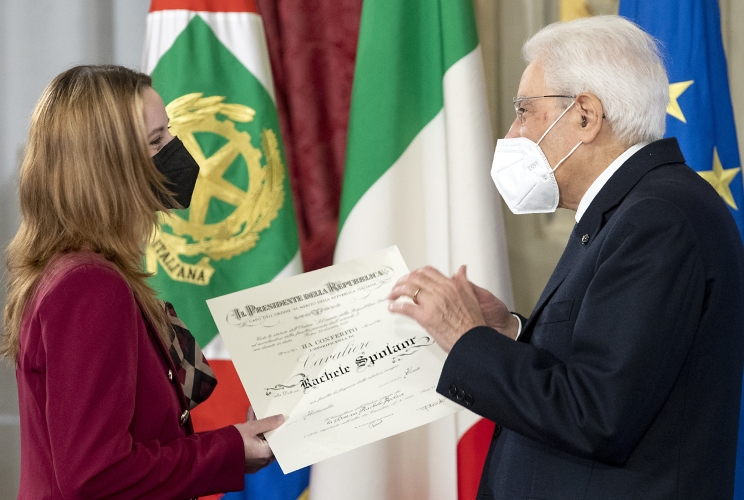 Il Presidente Sergio Mattarella consegna l'onorificenza OMRI “motu proprio” a Rachele Spolaor