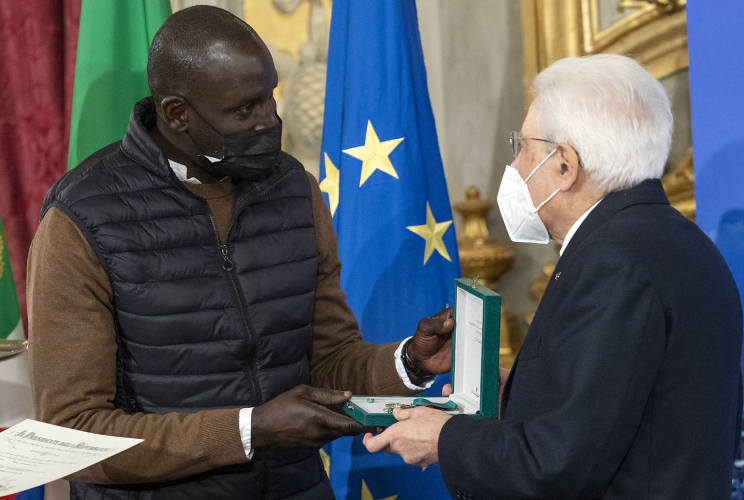 Il Presidente Sergio Mattarella consegna l'onorificenza OMRI “motu proprio” a Mamadou Fall