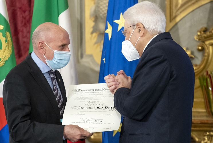 Il Presidente Sergio Mattarella consegna l'onorificenza OMRI “motu proprio” a Giovanni Lo Dato