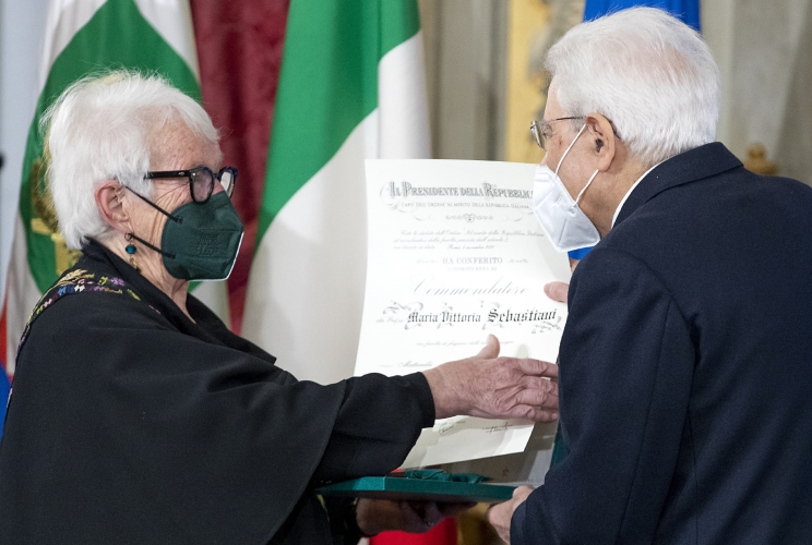 Il Presidente Sergio Mattarella consegna l'onorificenza OMRI “motu proprio” a Maria Vittoria Sebastiani