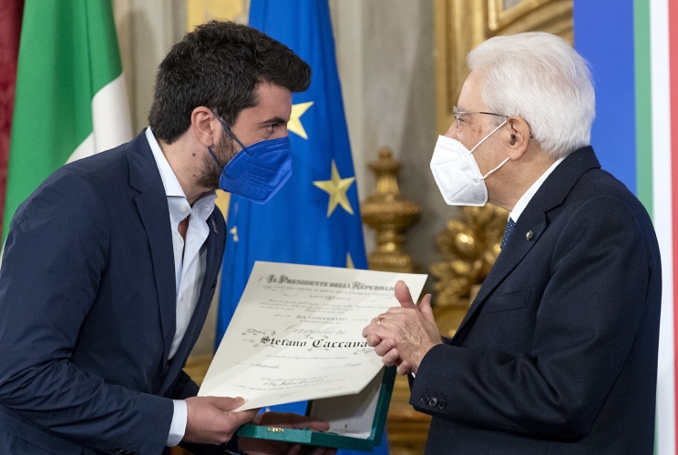 Il Presidente Sergio Mattarella consegna l'onorificenza OMRI “motu proprio” a Stefano Caccavari