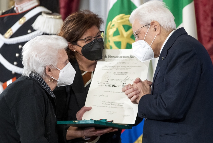 Il Presidente Sergio Mattarella consegna l'onorificenza OMRI “motu proprio” a Carolina Benetti
