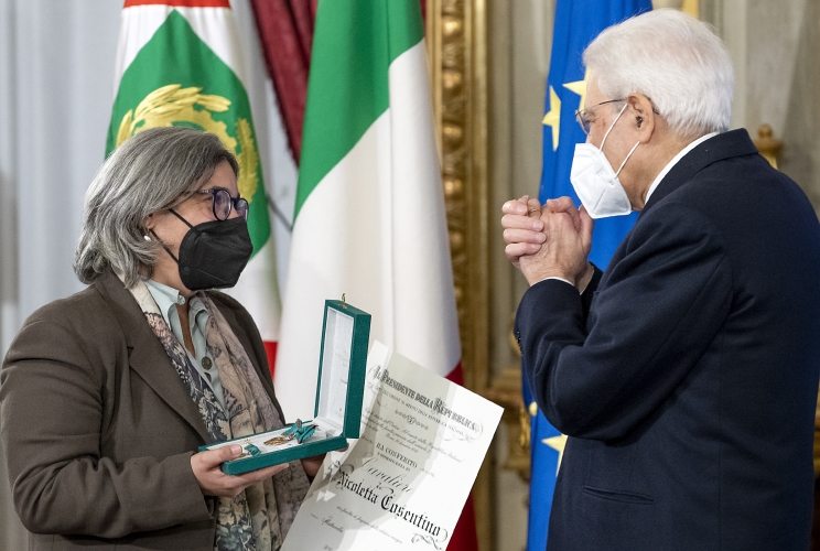 Il Presidente Sergio Mattarella consegna l'onorificenza OMRI “motu proprio” a Nicoletta Cosentino