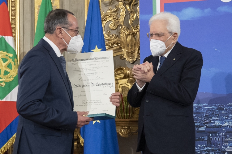 Il Presidente Sergio Mattarella consegna l'onorificenza OMRI “motu proprio” a Aldo Andrea Di Cristofaro