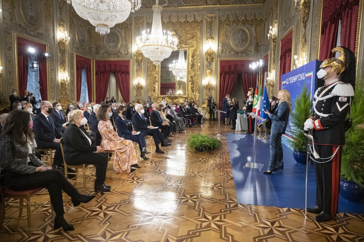 Un momento della cerimonia di consegna delle onorificenze OMRI conferite “motu proprio” dal Presidente della Repubblica a cittadini distintisi per atti di eroismo e impegno civile
