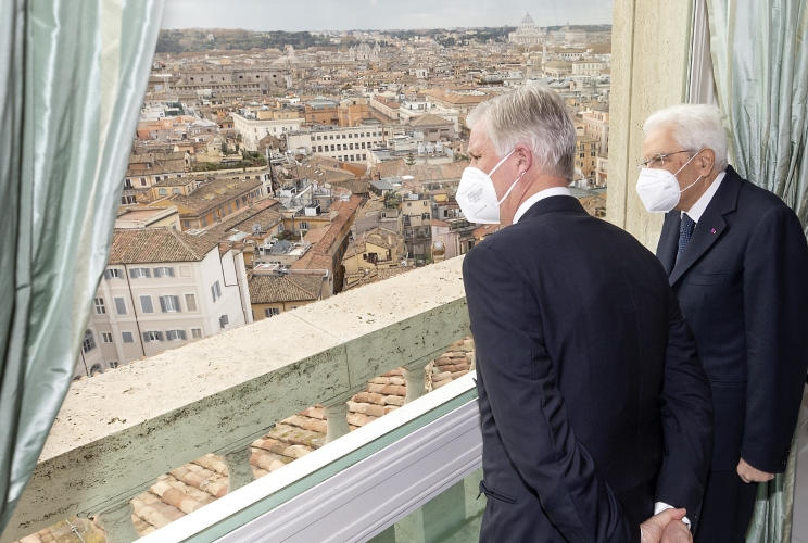 Il Presidente Sergio Mattarella e S.M. il Re Filippo dei Belgi osservano Roma dal Torrino del Quirinale