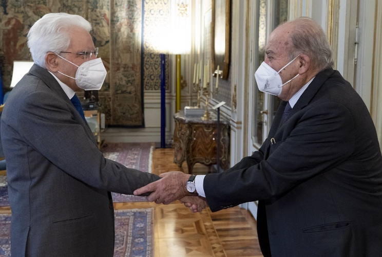 Il Presidente Sergio Mattarella riceve il rapporto CENSIS 2021 da Giuseppe De Rita, Presidente della Fondazione CENSIS – Centro Studi Investimenti Social