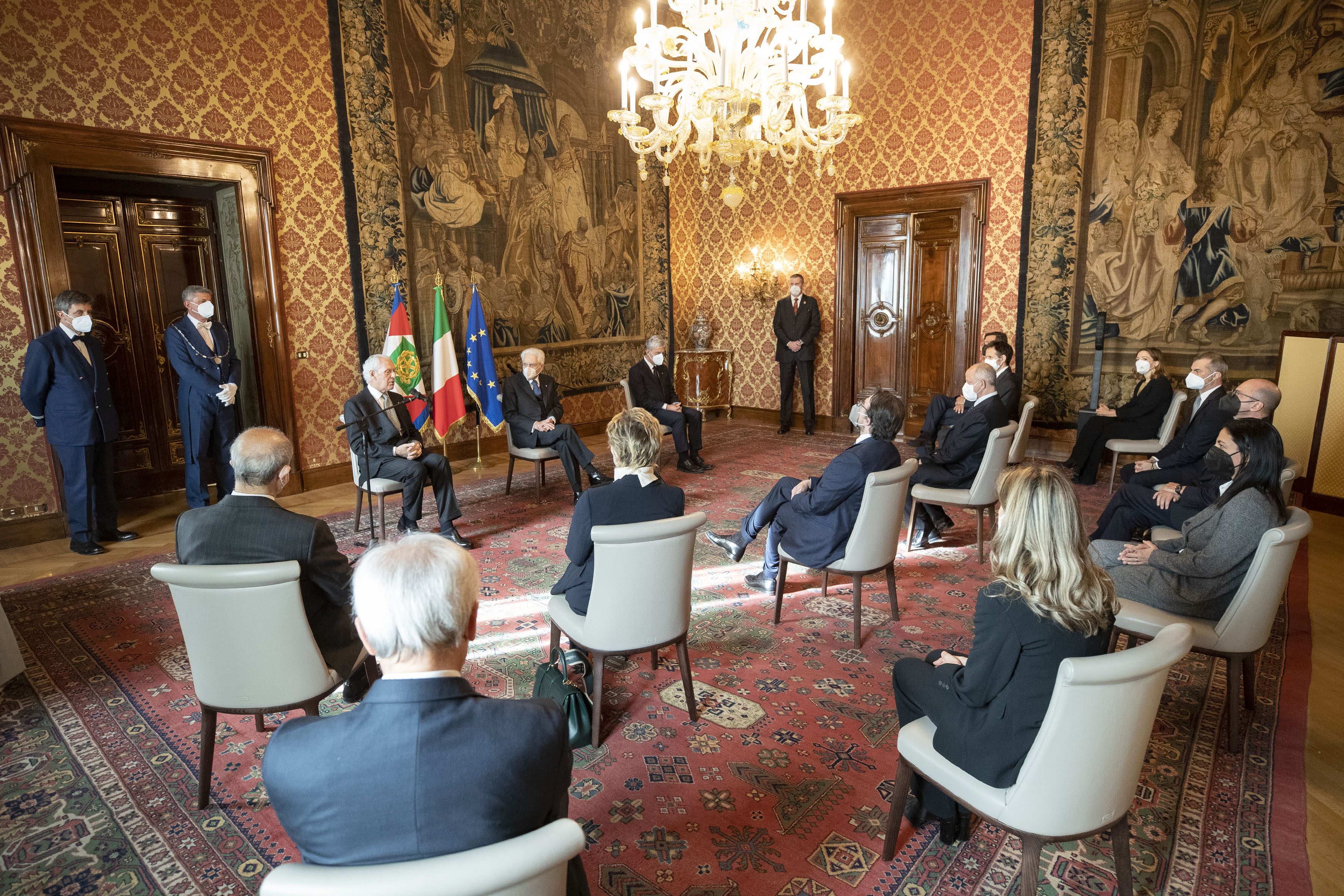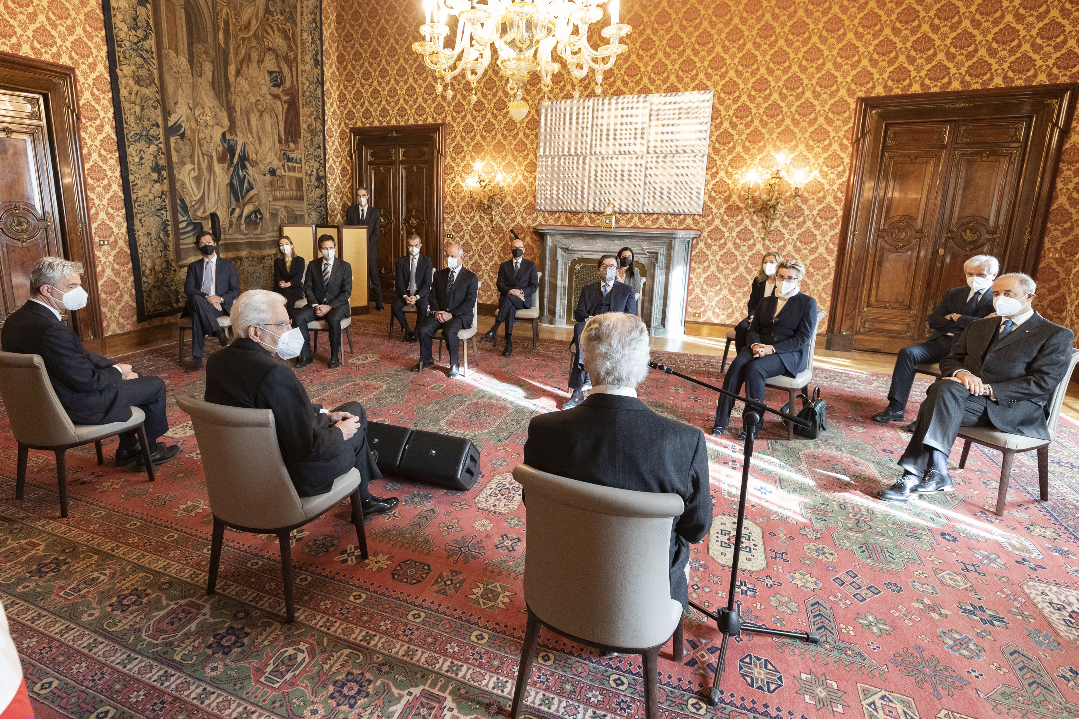Il Presidente della Repubblica Sergio Mattarella inontra Marco Tronchetti Provera, Vice Presidente Esecutivo e Amministratore Delegato di Pirelli & C. SpA, unitamente ad una delegazione,alla vigilia del 150°anniversario di fondazione della società