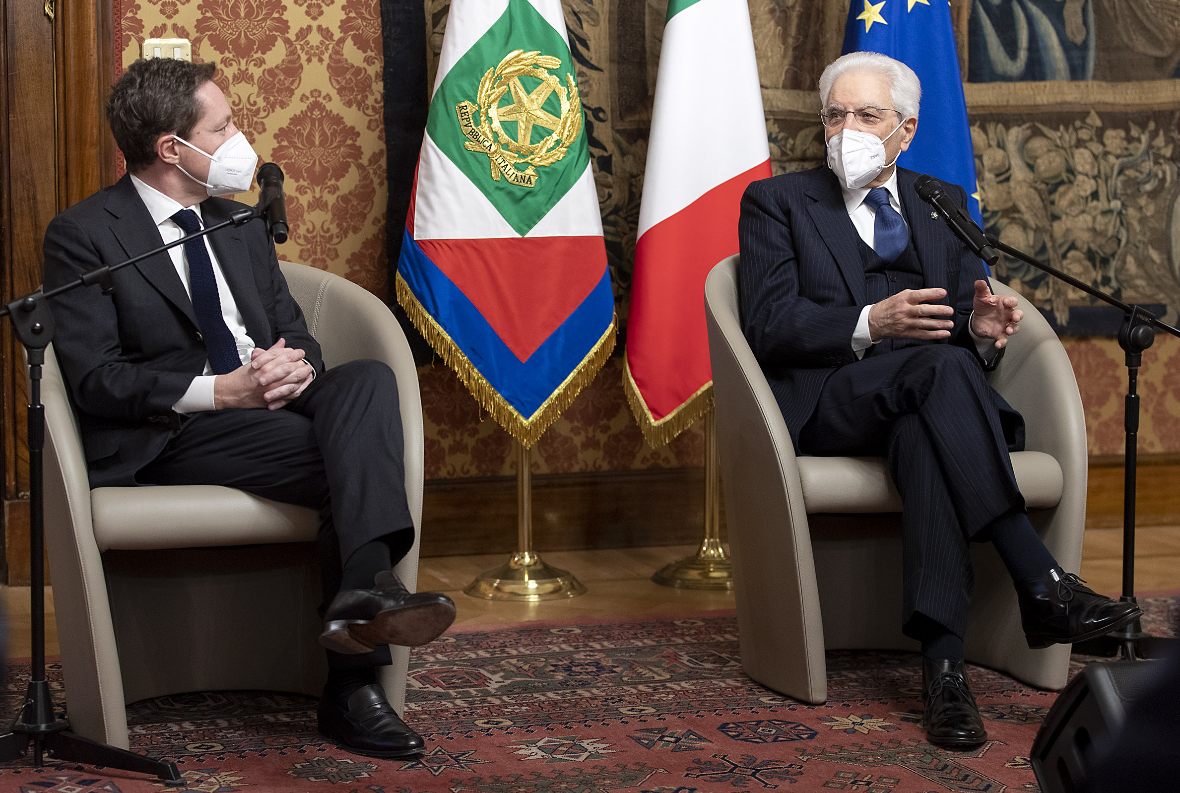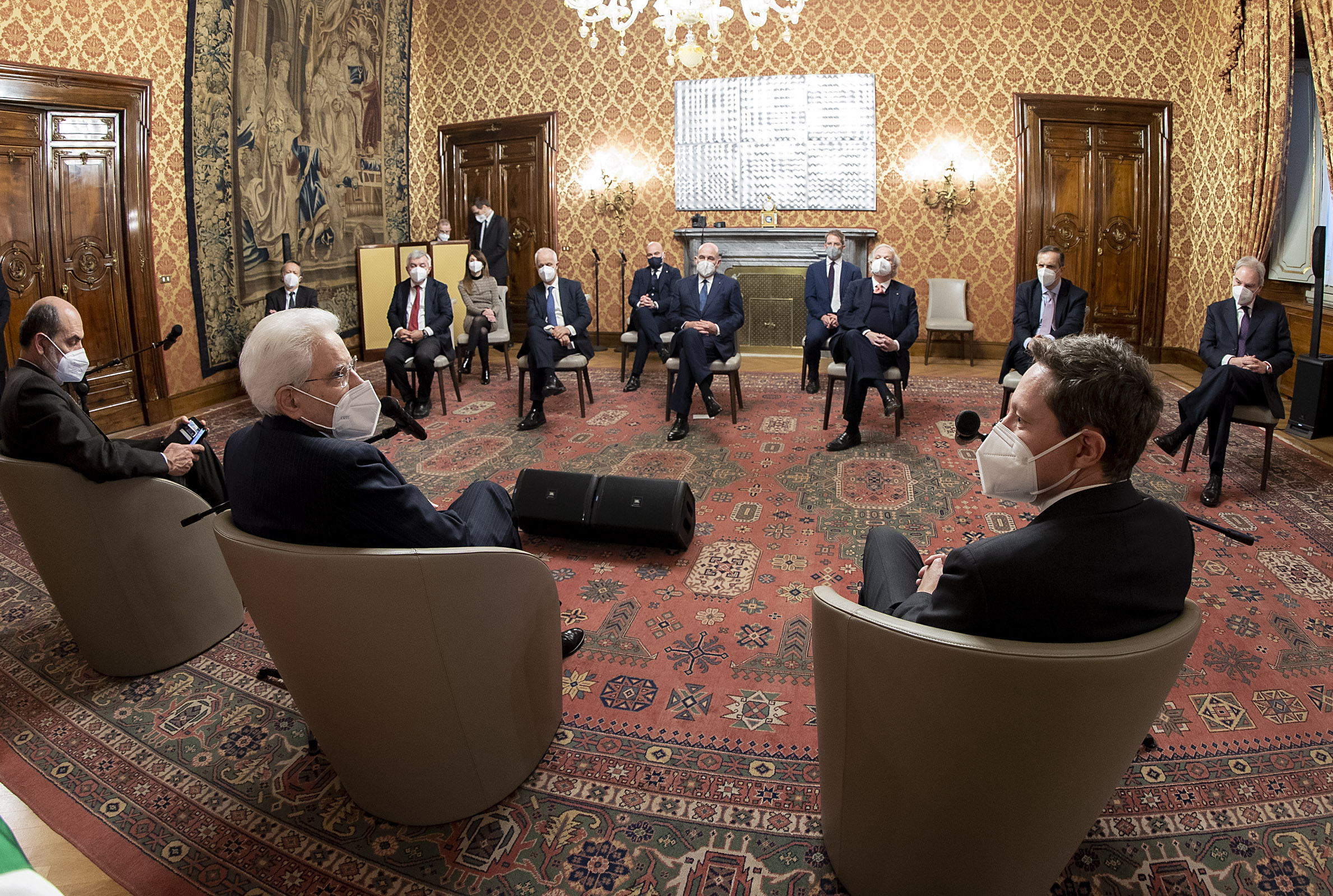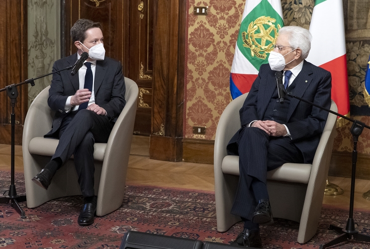 Il Presidente Mattarella nel corso dell'incontro con una delegazione dell'Osservatorio Permanente dei Giovani Editori guidata dal Presidente Andrea Ceccherini.