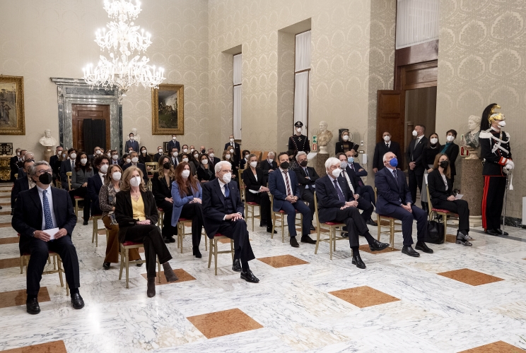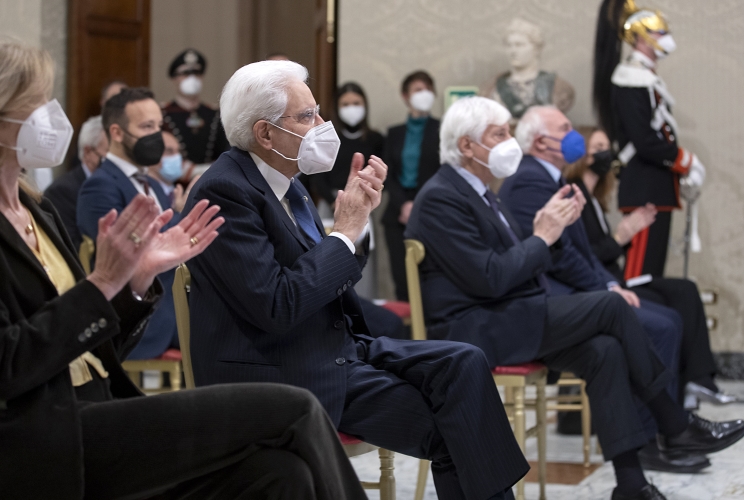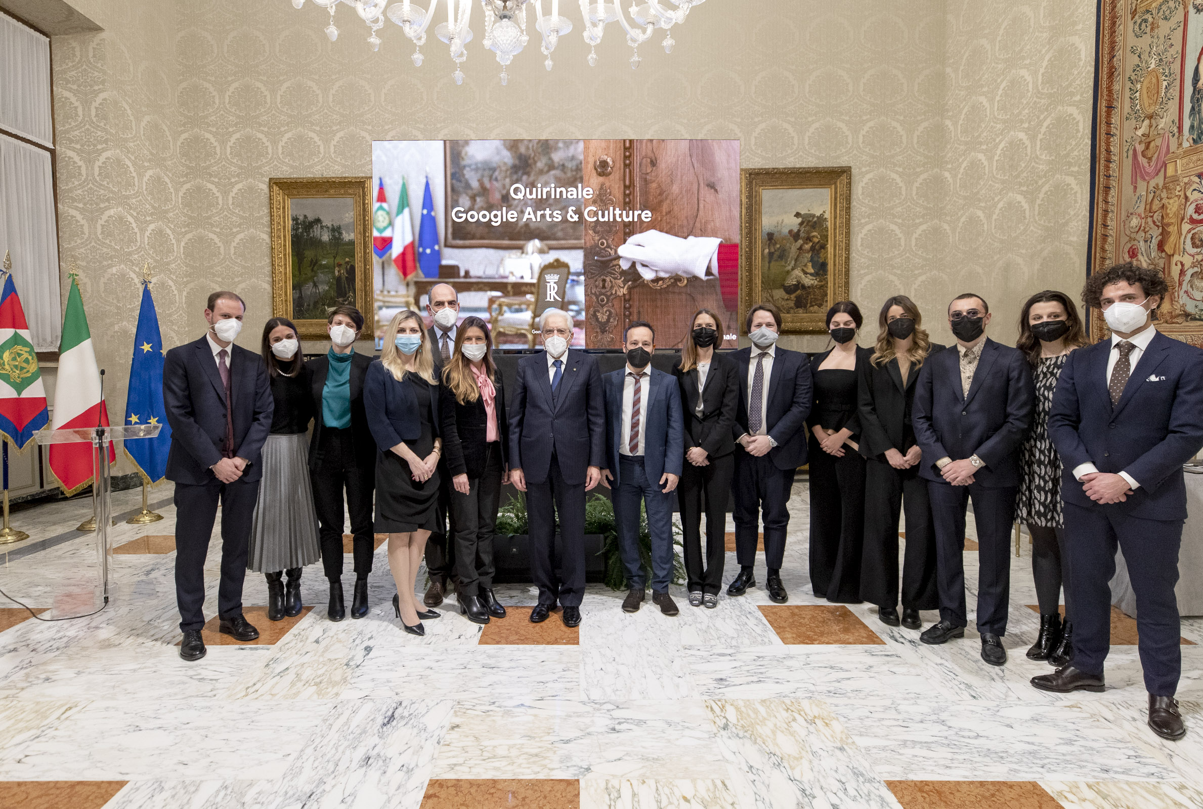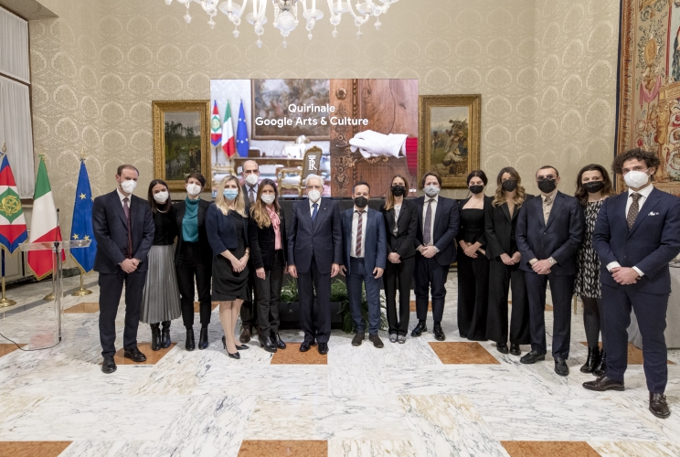 Il Presidente Sergio Mattarella con i collaboratori al progetto Google Arts & Culture "Quirinale"