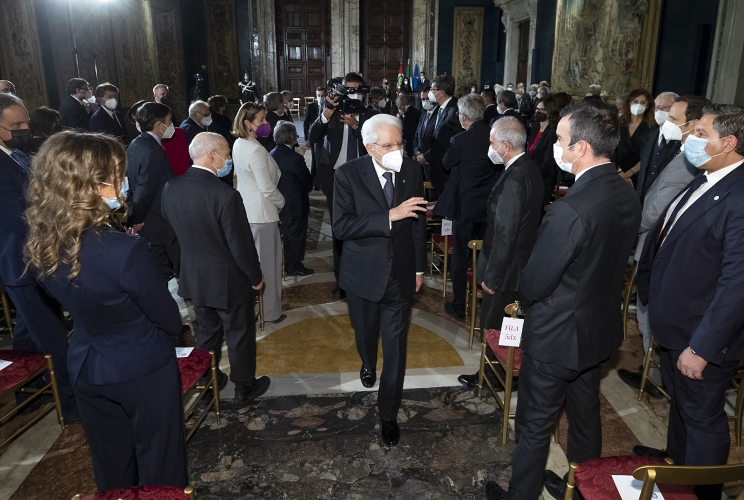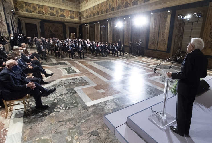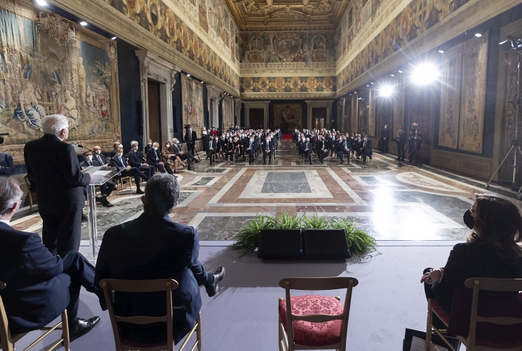 Il Presidente Sergio Mattarella in occasione della cerimonia per lo scambio degli auguri di fine anno con i rappresentanti delle istituzioni, delle forze politiche e della società civile