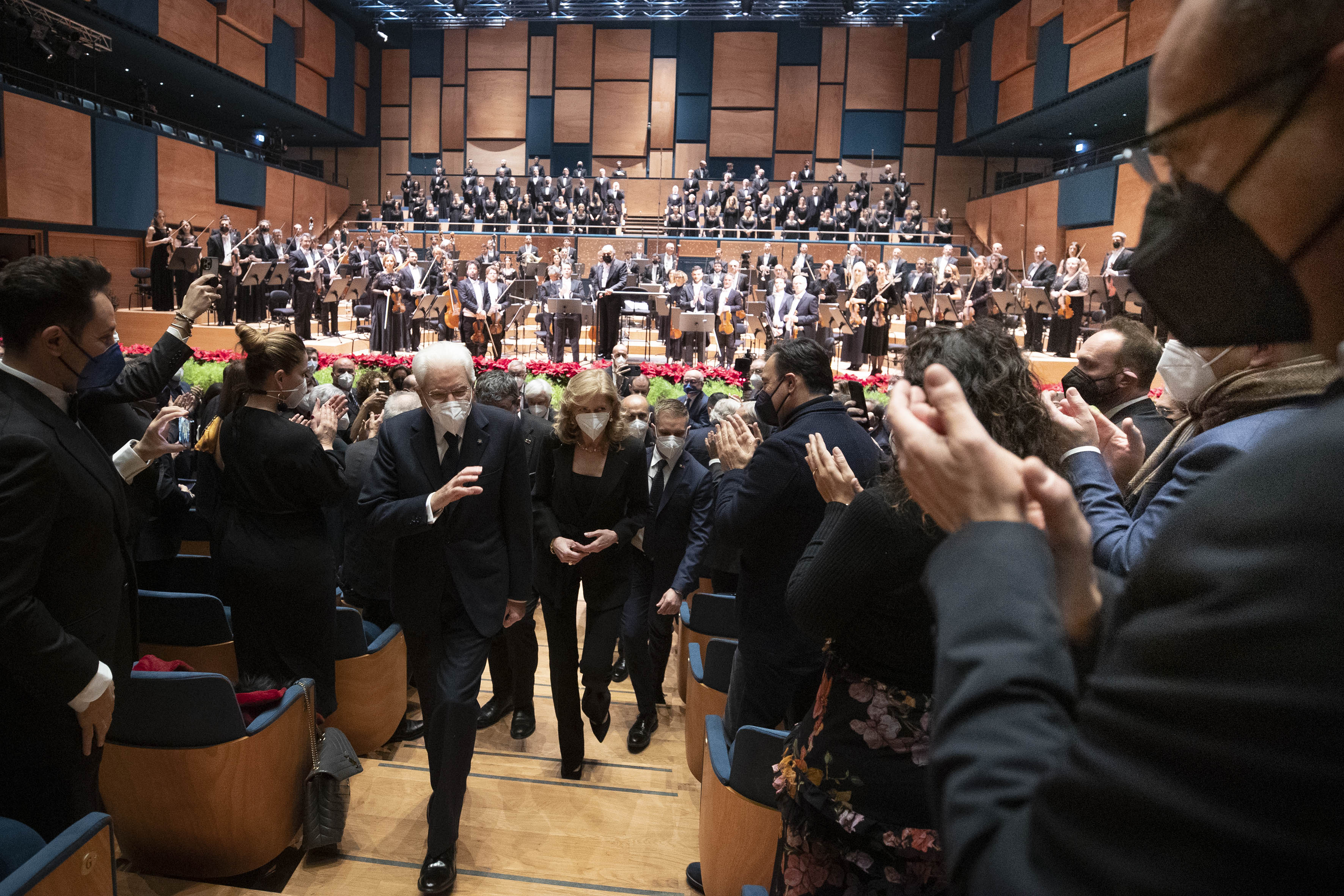 Il Presidente della Repubblica Sergio Mattarella al nuovo Auditorium del Maggio Musicale Fiorentino,in occasione del concerto di inaugurazione,diretto dal Maestro Zubin Mehta
