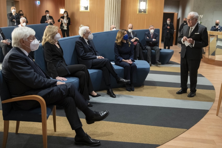 Il Presidente della Repubblica Sergio Mattarella con Paolo Desideri, Progettista del nuovo Auditorium,in occasione del concerto di inaugurazione,diretto dal Maestro Zubin Mehta