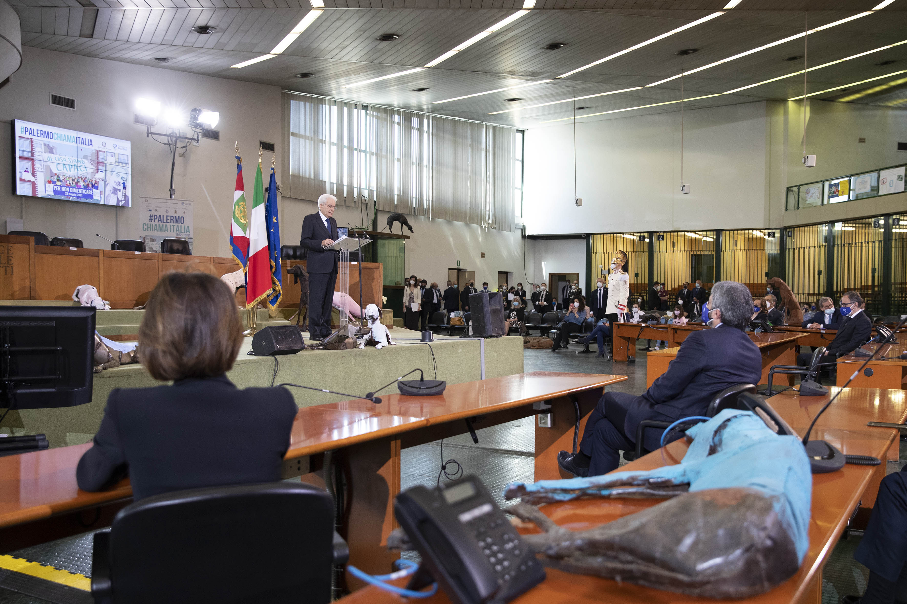 Il Presidente Sergio Mattarella durante il suo intervento in occasione della cerimonia commemorativa dell’anniversario delle stragi di Capaci e di Via d’Amelio.